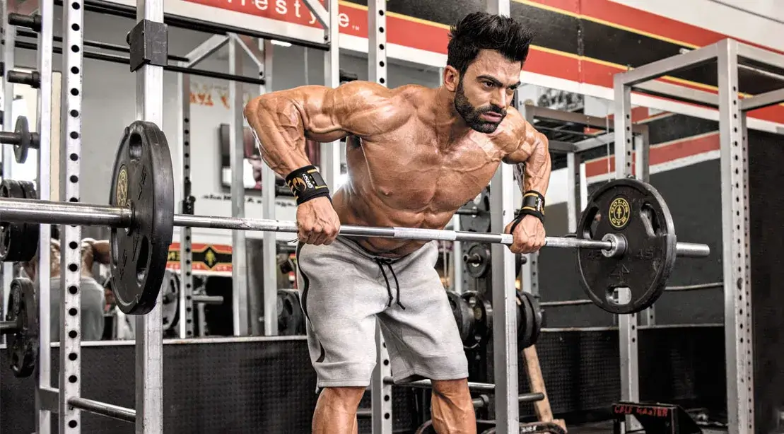 | Barbell rows | Mid back rhomboids | Moderate to hard | Barbell | Overall thickness | 4 sets 6 to 10 |